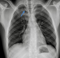 Question: A 16-year-old healthy male adolescent presented in the Emergency Department with right pleuritic chest pain extending to neck, that started suddenly seven hours before admission, without previous history of trauma or other symptoms.